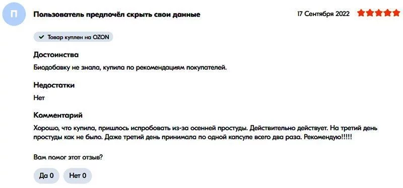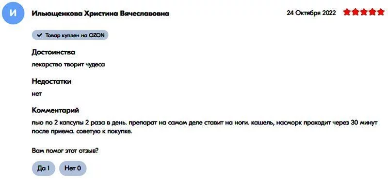 网友“叶莲娜·V”表示:“很好的胶囊。不是第一次购买了。帮助抵抗病毒。”