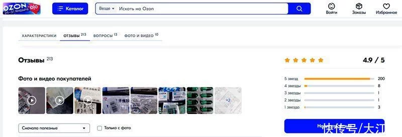 此外,也有不少人选择从有“俄罗斯亚马逊”之称的Ozon上购买。在销量最高的链接中,213位消费者给连花清瘟打分,5星好评占比93.9%。筛除平台默认好评后,笔者选取了前十页评价中描述较为详尽的反馈进行展示。