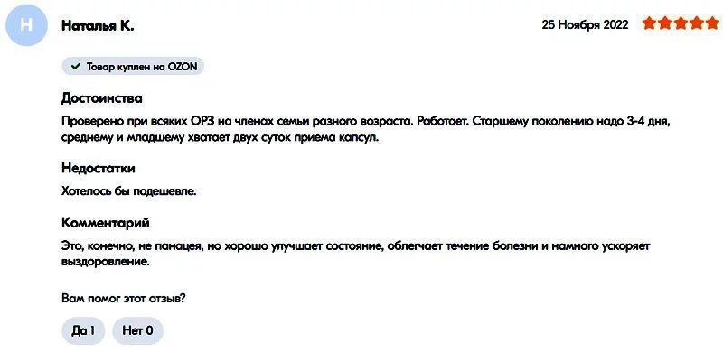 网友“娜塔莉亚·S”:“真的有用。就是每次要服用好多粒。很好的产品,确实有助于在短时间内康复。”