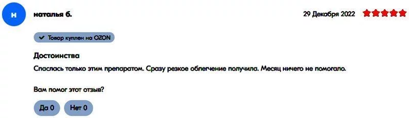 网友“娜塔莉亚”:“被此药所救,身体立即得到解脱。之前曾服用其他药品很长时间,但没有任何效果。”